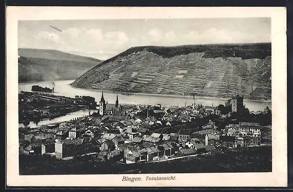 AK Bingen / Rhein, Totalansicht mit Ufer