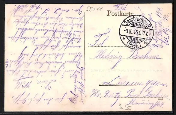 alte Ansichtskarte, gelaufen 1915, Eckknick oben re., guter Zustand