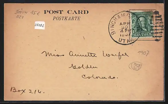 gelaufen 1907, Eckknicke li. oben und re. unten, guter Zustand