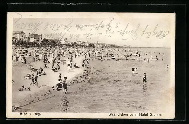 AK Binz / Rügen, Strandleben am Hotel Gramm