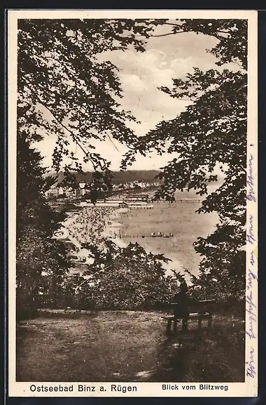 AK Binz a. Rügen, Blick vom Blitzweg auf den Strand