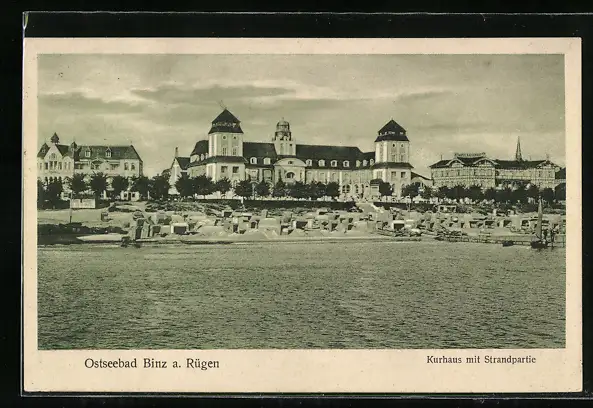 AK Binz a. Rügen, Kurhaus mit Strandpartie