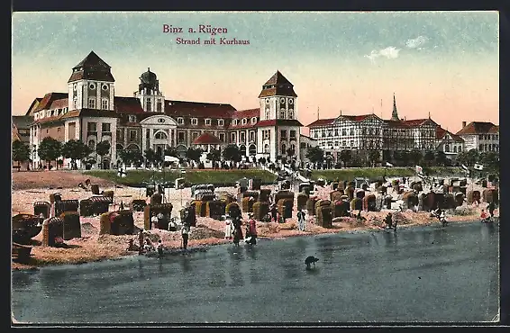 AK Binz a. Rügen, Strand mit Kurhaus