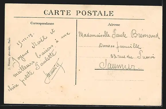 Personenbezogene Daten auf der Rückseite der Karte wurden durch blauen Textmarker unkenntlich gemacht. Die blauen Stellen sind auf die Vorderseite durchgeweicht und wirken sich negativ auf das Postkartenfoto aus