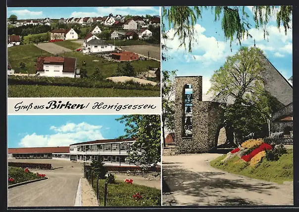 AK Birken-Honigsessen /Wissen, Ortspartie, Kirche mit Ruine, Teilansicht