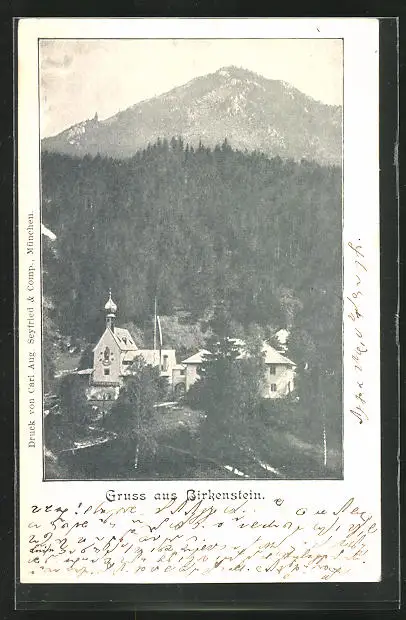 AK Birkenstein, Ortspartie mit Kirche im Gebirge