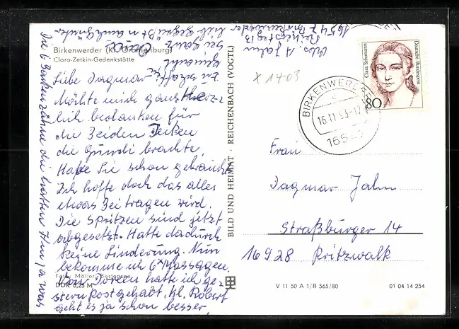 alte Ansichtskarte, gelaufen 1993, guter Zustand