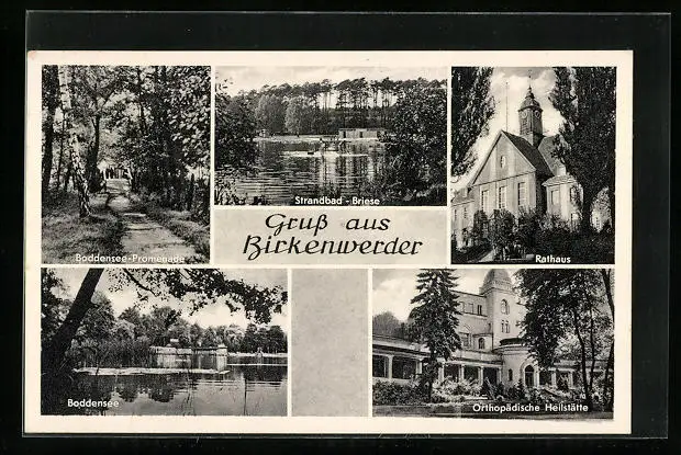 AK Birkenwerder, Strandbad Briese, Boddensee-Promenade, die Orthopädische Heilstätte