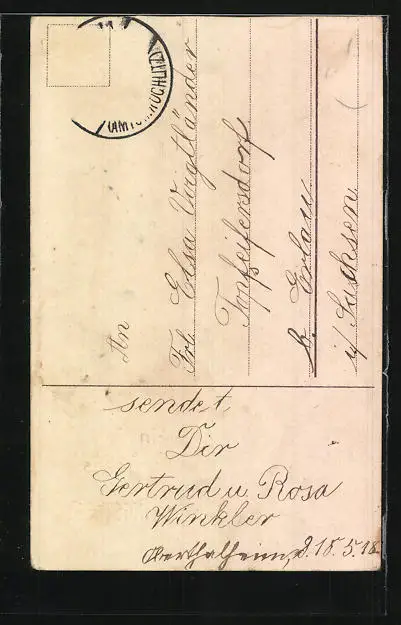 alte Ansichtskarte, gelaufen, Briefmarke entfernt, Bugspuren unten Mitte u. li., guter Zustand