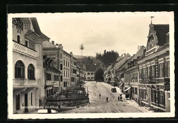 AK Birkfeld, Marktplatz mit Gasthof Hutter