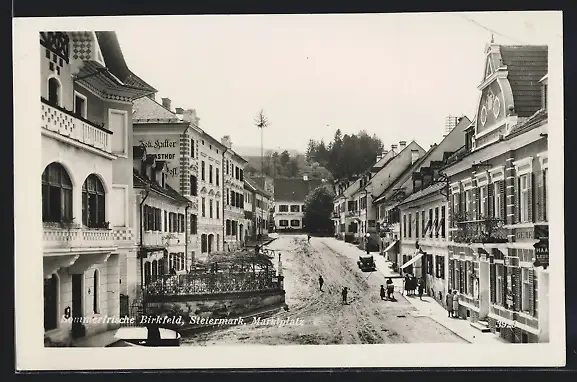 AK Birkfeld, Marktplatz mit Gasthof J. Szutter und Passanten