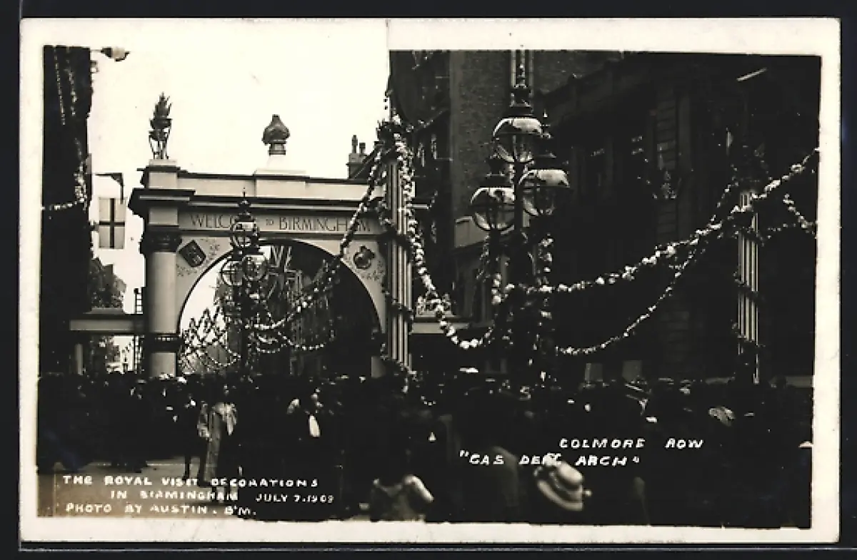 AK Birmingham, The Royal Visit Decorations, July 7th 1909, Colmore Row, Arch