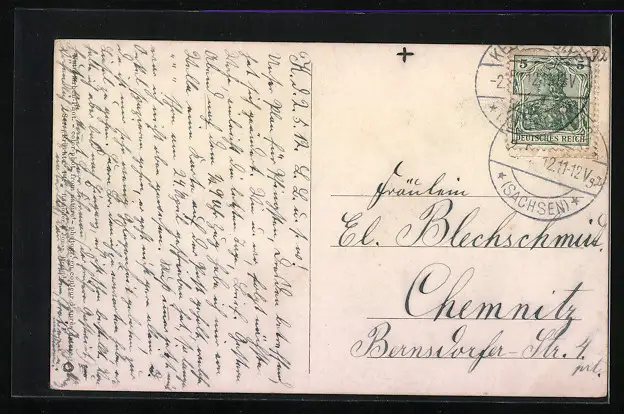 alte Ansichtskarte, gelaufen 1912, Stempelspur, guter Zustand