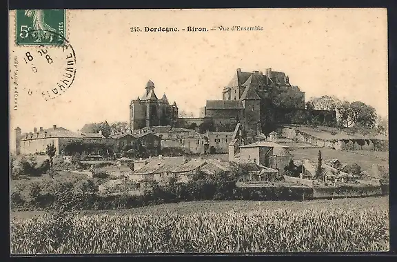AK Biron, Vue d`ensemble du village et du château imposant