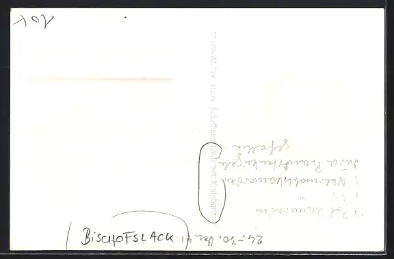 Personenbezogene Daten auf der Rückseite der Karte wurden durch blauen Textmarker unkenntlich gemacht. Die blauen Stellen sind auf die Vorderseite durchgeweicht und wirken sich negativ auf das Postkartenfoto aus