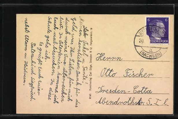 alte Ansichtskarte, gelaufen, Briefmarke tw. entfernt, guter Zustand