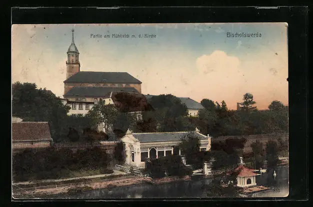 AK Bischofswerda, Partie am Mühlteich m. d. Kirche