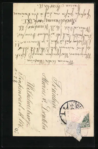 alte Ansichtskarte, gelaufen, Briefmarke entfernt, guter Zustand