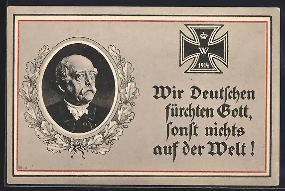 AK Bismarck im Portrait, Eisernes Kreuz, Zitat