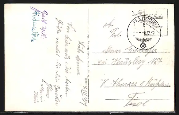 alte Ansichtskarte, gelaufen 1939, Eckknick li. oben, guter Zustand