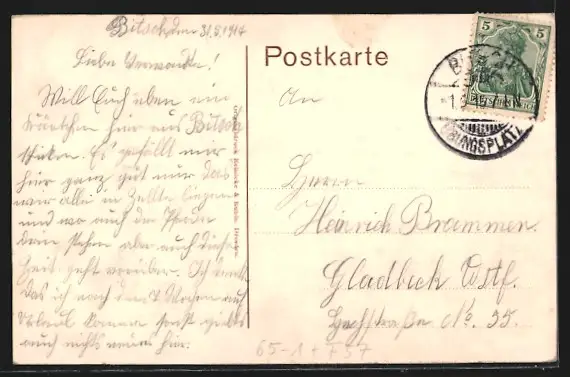 alte Ansichtskarte, gelaufen 1914, guter Zustand