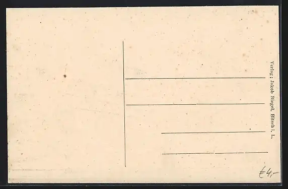 Personenbezogene Daten auf der Rückseite der Karte wurden durch blauen Textmarker unkenntlich gemacht. Die blauen Stellen sind auf die Vorderseite durchgeweicht und wirken sich negativ auf das Postkartenfoto aus