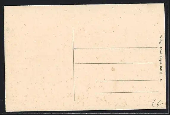 Personenbezogene Daten auf der Rückseite der Karte wurden durch blauen Textmarker unkenntlich gemacht. Die blauen Stellen sind auf die Vorderseite durchgeweicht und wirken sich negativ auf das Postkartenfoto aus