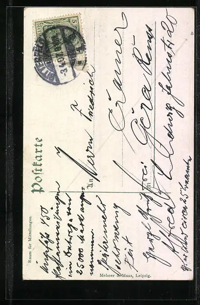 alte Ansichtskarte, gelaufen 1907, Eckknick li. unten, guter Zustand