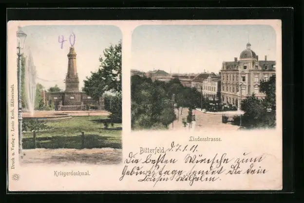 AK Bitterfeld, Kriegerdenkmal mit Fontäne, Lindenstrasse