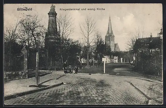 AK Bitterfeld, Kriegerdenkmal und evang. Kirche