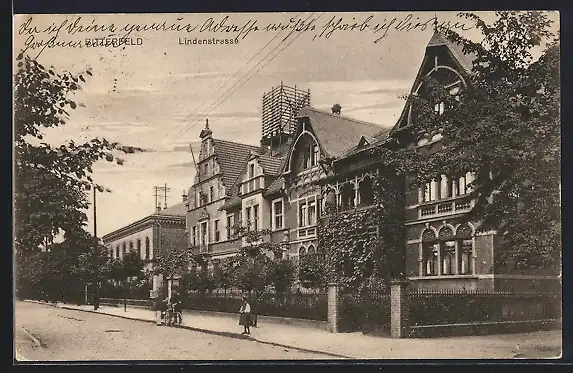 AK Bitterfeld, Lindenstrasse mit Villenfassaden