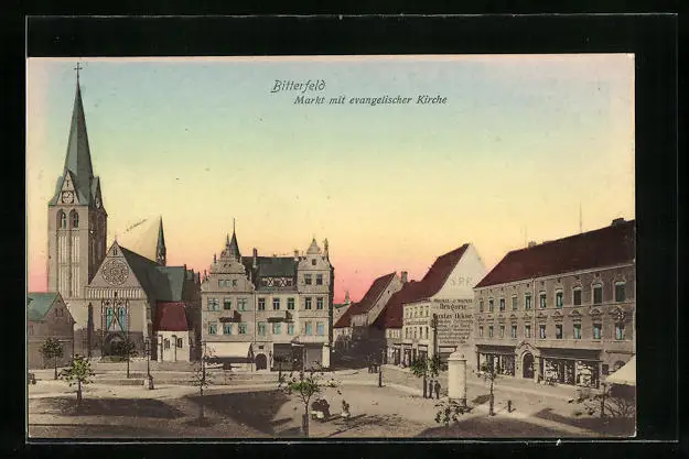 AK Bitterfeld, Markt mit evangelischer Kirche