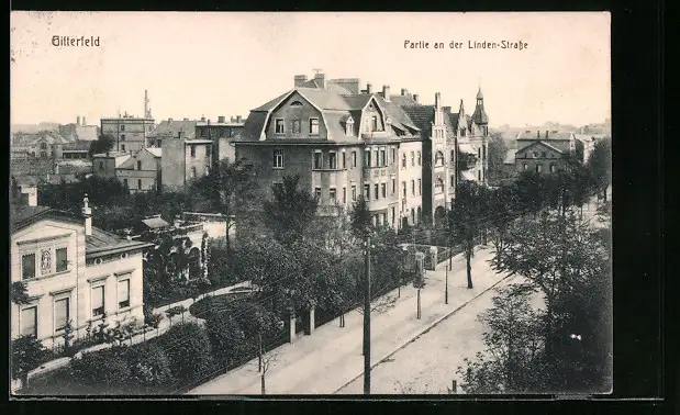 AK Bitterfeld, Partie an der Linden-Strasse mit Bäumen