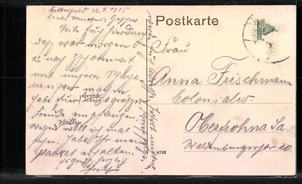alte Ansichtskarte, gelaufen 1915, Briefmarke tw. entfernt, rückseitig Oberflächenschaden, guter Zustand