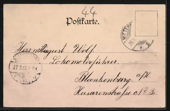 alte Ansichtskarte, gelaufen 1902, Briefmarke entfernt, Bugspur re. mittig, guter Zustand