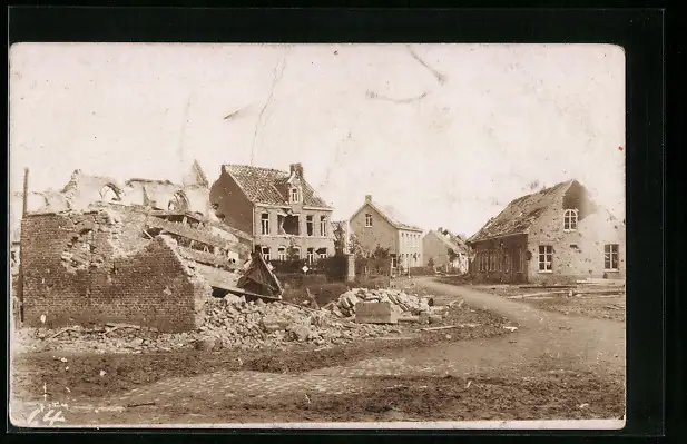 AK Bixschoote, Strassenpartie mit Ruinen