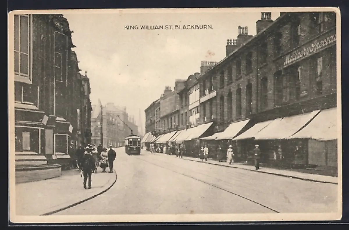 Personenbezogene Daten auf der Rückseite der Karte wurden durch blauen Textmarker unkenntlich gemacht. Die blauen Stellen sind auf die Vorderseite durchgeweicht und wirken sich negativ auf das Postkartenfoto aus