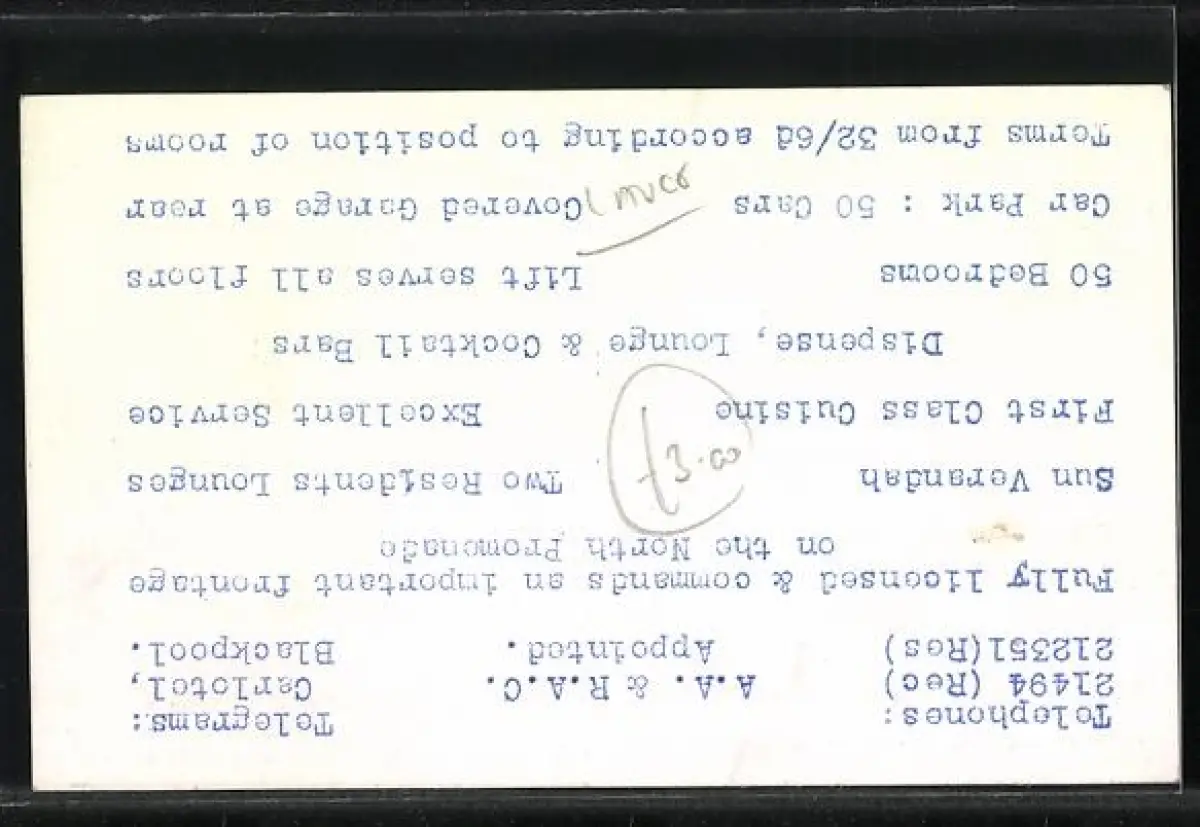 AK Blackpool, The Carlton Hotel, North Shore, Interiors