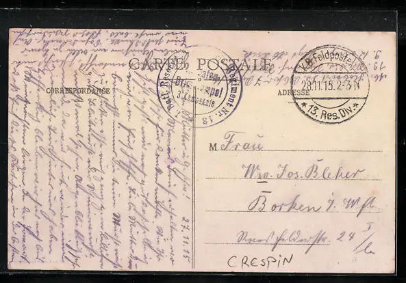 alte Ansichtskarte, gelaufen 1915 als Feldpost, guter Zustand