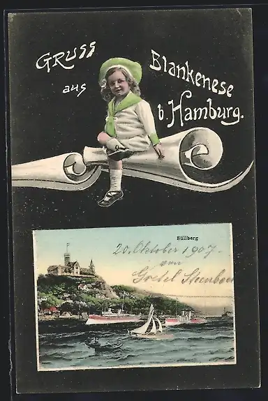 AK Blankenese b. Hamburg, Süllberg, Dampfer, Segelboot