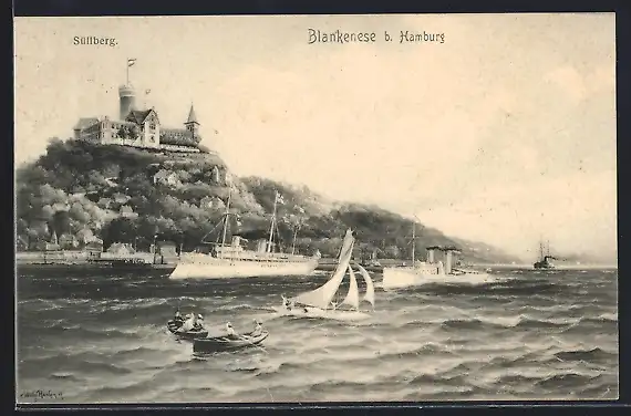 AK Blankenese b. Hamburg, Süllberg mit Dampfern