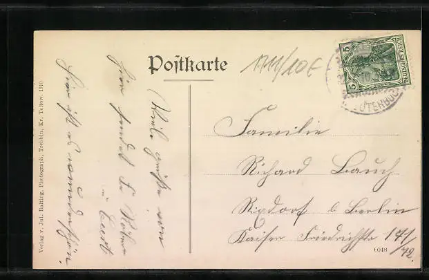 alte Ansichtskarte, gelaufen 1910, guter Zustand