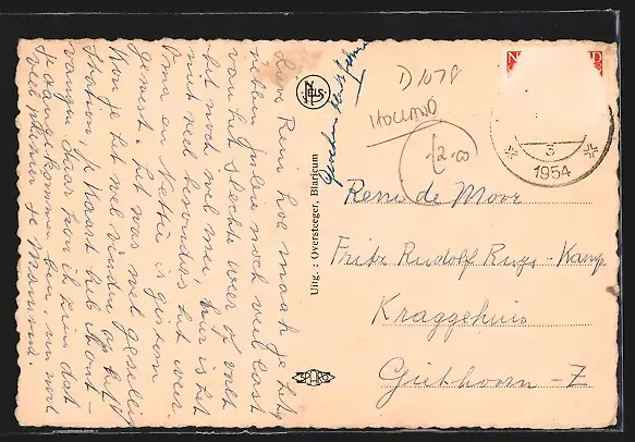 alte Ansichtskarte, gelaufen 1954, Briefmarke entfernt, guter Zustand