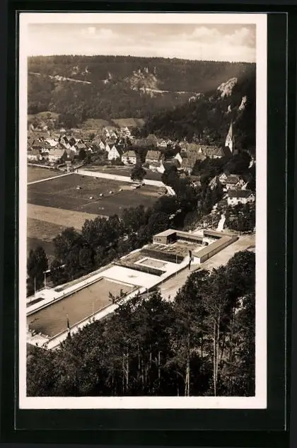 AK Blaubeuren, Freischwimmbad, Fliegeraufnahme