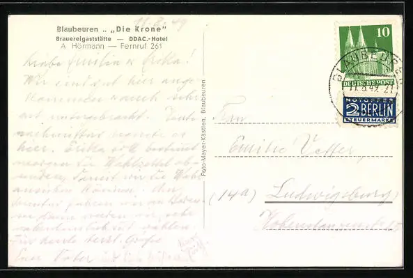 alte Ansichtskarte, gelaufen 1949, guter Zustand
