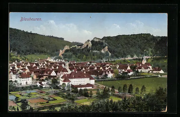 AK Blaubeuren, Ortsansicht mit Bergen