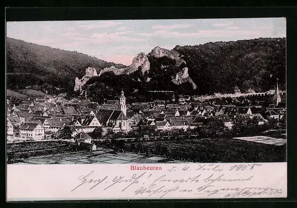 AK Blaubeuren, Teilansicht mit Kirche