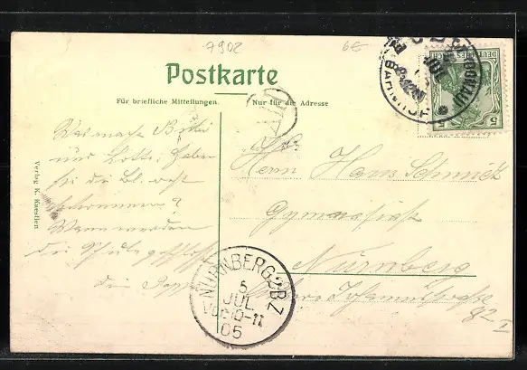 alte Ansichtskarte, gelaufen 1905, guter Zustand