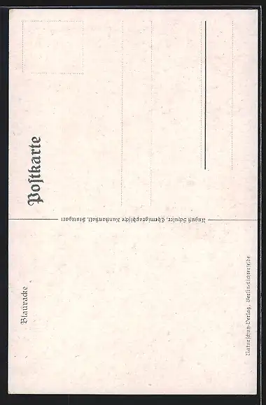 Personenbezogene Daten auf der Rückseite der Karte wurden durch blauen Textmarker unkenntlich gemacht. Die blauen Stellen sind auf die Vorderseite durchgeweicht und wirken sich negativ auf das Postkartenfoto aus