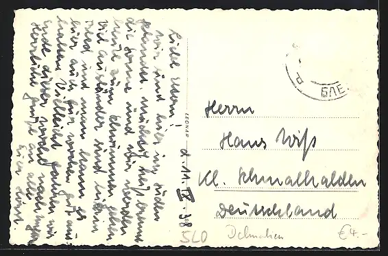 alte Ansichtskarte, gelaufen, Briefmarke entfernt, guter Zustand